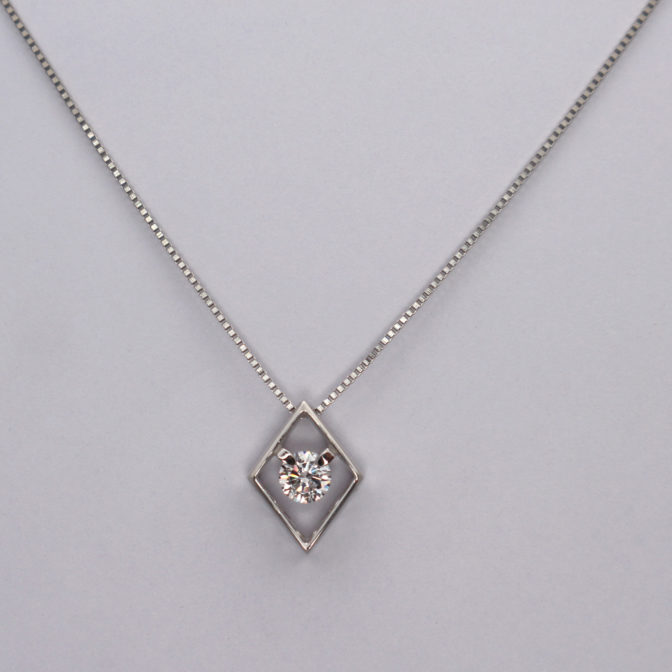 煌めき輝くダイヤモンドをひし形ペンダントにあしらった二点留めネックレスです。